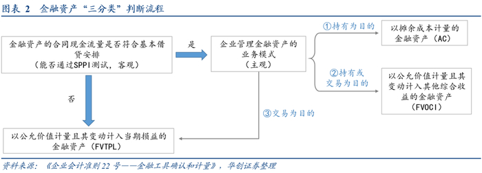 2018年颁布的《企业会计准则第22号——金融工具和计量》(以下简称“22号准则”)明确了金融工具的“三分类”:摊余成本计量的金融资产AC、以公允价值计量且其变动计入其他综合收益的金融资产FVOCI、以公允价值计量且其变动计入当期损益的金融资产FVTP。
