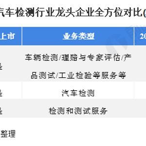 汽车检测行业主要上市公司:安车检测(300572)、华测检测(300012)、夏阳检测(831228)、中国汽研(601965)