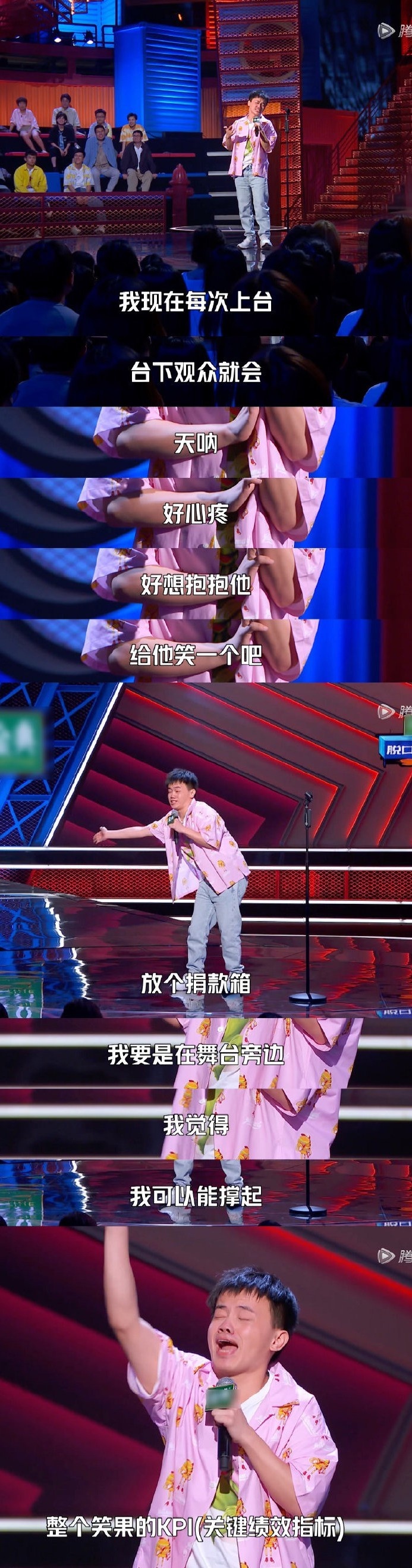 因此,他结束的那句话才显得那么动人且有力量:“其实我从来不觉得,我有什么缺陷,但小时候大家都在笑我,就跟今天一样,大家都在笑。但我明白了,不好笑才是脱口秀演员最大的缺陷。”从嘲讽的笑到喝彩的笑,他证明自己是一名优秀的脱口秀演员。