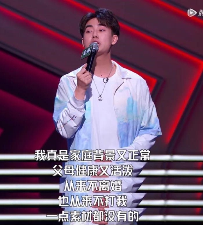 连续三届都没走远的江梓浩就很典型。他自嘲道,自己“家庭背景又正常,父母健康又活泼,从来不离婚,也从来不打我,一点素材都没有的”……明明“我”都没素材了,他就绕到脱口秀的圈子里,说的还是“我”,又是好朋友王勉、又是杨笠的,落脚点在自己“帅”。一听我就知道危险了:大哥,除了自己以外,脱口秀还可以说点别的啊。
