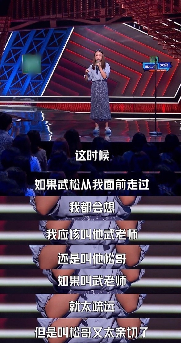 如果武松从她面前路过,她都会纠结:我应该叫他武老师,还是松哥?叫武老师就太疏远了,叫松哥又好像太过于亲切。