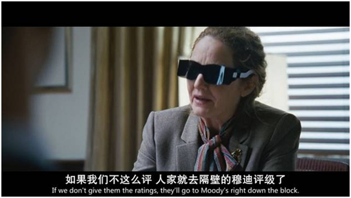 《大空头》用这个镜头不留情面地拆穿了世界顶尖评级机构盲目逐利的真面目。当然,次贷危机的爆发并非是评级机构单独造成的。监管机构、银行、大学教授,乃至参与其中的每个投资者,都有程度不同的责任。
