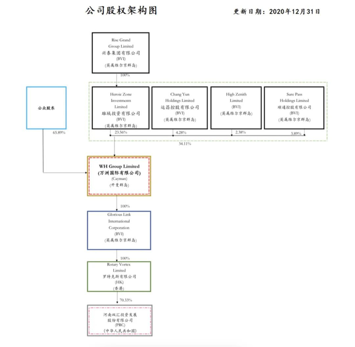 (双汇发展股权结构,来源:双汇发展2020年财报)