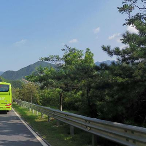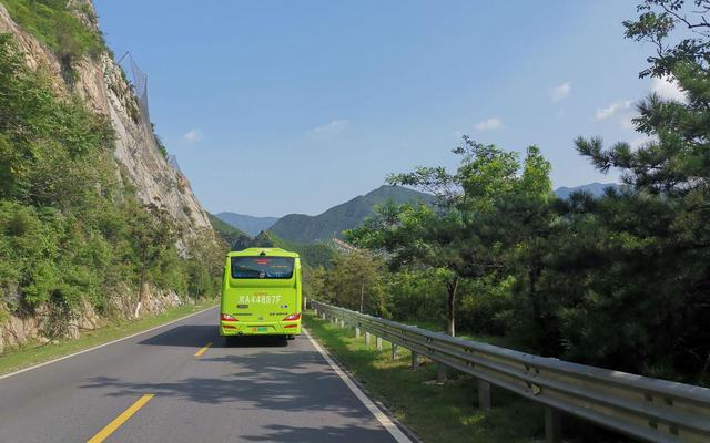8月17日,一辆公交车行驶在北京门头沟的山路上。新京报记者 王颖 摄