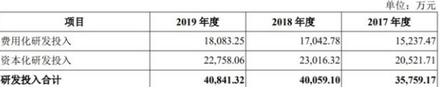 作为以技术驱动发展的医疗器械行业,对研发创新的投入力度将影响企业未来的成长空间。2019年,以CT为主的影像设备收入为12.52亿元,占东软医疗营收的65%,研发投入在总营收中占据相当比重,如果加上资本化的研发投入,东软医疗2017、2018、2019三年的研发投入分别1.52亿元、1.7亿元和1.81亿元,占营收的比重分别为10.55%、8.85%和9.39%。如果再加上资本化的研发投入,东软医疗2017、2018、2019三年的研发投入分别达到3.58亿、4.01亿元和 4.08亿元,占营收的比重高达24.75%、20.8%和21.21%。