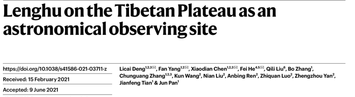 “综合来看,这是一个世界级的天文观测台址。”论文通讯作者之一、同时也是第一作者的邓李才在接受澎湃新闻(www.thepaper.cn)记者采访时笃定地表示。该研究由中科院国家天文台、中国科学院大学、西华师范大学、中国科学院地质与地球物理研究所、中科院紫金山天文台青海观测站等团队的研究人员联合完成。