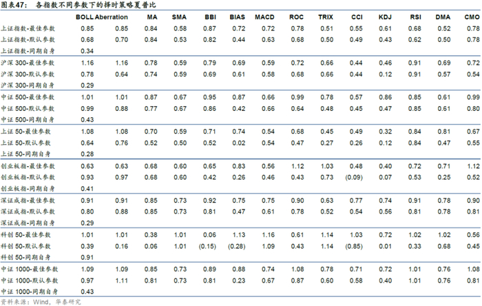 技术指标对主要宽基指数普遍有较好效果,推荐使用默认参数