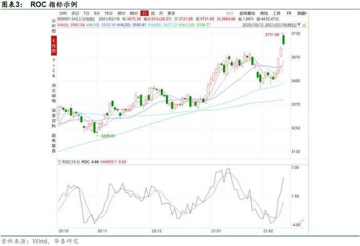 从构建方法来看,MTM与ROC的主要区别在于是否除以前N期收盘价,即是否对股价的涨跌进行了标准化调整,我们认为ROC的调整更能体现出价格波动的幅度,所以后续研究中,我们重点对ROC指标进行实证分析。