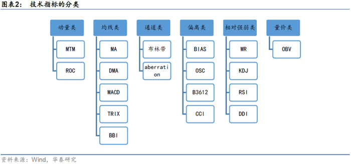 典型技术指标包括动量类、均线类、相对强弱类等