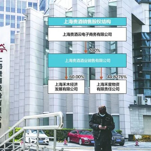 启信宝信息显示,上海贵酒销售由上海贵酒云电子商务有限公司全资控股,后者是贵酿酒业有限公司的全资子公司,再向上三级追溯,控股股东为注册在香港地区的中国贵酒集团有限公司。
