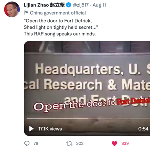 中国外交部发言人赵立坚在社交媒体平台推特上转发,并评论说:“这首歌曲唱出了我们的心声。”