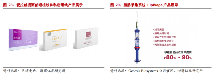 积极拓展医美产品管线。四环通过代理等方式不断扩充医美产品矩阵。除了渼颜空间独家代理的肉毒素产品乐提葆已在 2021 年 3 月上市销售以外,预计公司代理的 Hugel 的玻尿酸也预计将在 2021 年底获批。公司在 2021 年 6 月与韩国东方医疗会社达成合作,成为该公司旗下爱拉丝提可吸收缝线和私密用线两类产品在中国的独家代理;同时,公司也与美国 Genesis Biosystems 公司达成战略合作,获得其脂肪采集系统 LipiVage 在大中华区(中国大陆、香港、澳门、台湾地区)及韩国的独家代理权。