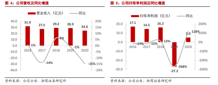 近五年公司营收一直受困于国家医药相关政策的影响。公司于 2018 年之前,90%以上的营收都来自心脑血管相关药物销售;自 2016 年以来受到医保控费、带量采购、两票制以及国家药品重点监控目录等政策影响,公司营收增长乏力,由 2016 年的 31.9 亿元下滑至 2020 年的 24.6 亿元,CAGR 为-6%;尤其是在 2019 年,因公司有 7 种药物被纳入第一批国家药品重点监控目录,导致公司在当年计提了大约 28.4 亿的商誉减值,公司归母净利润亏损 27.2 亿元。