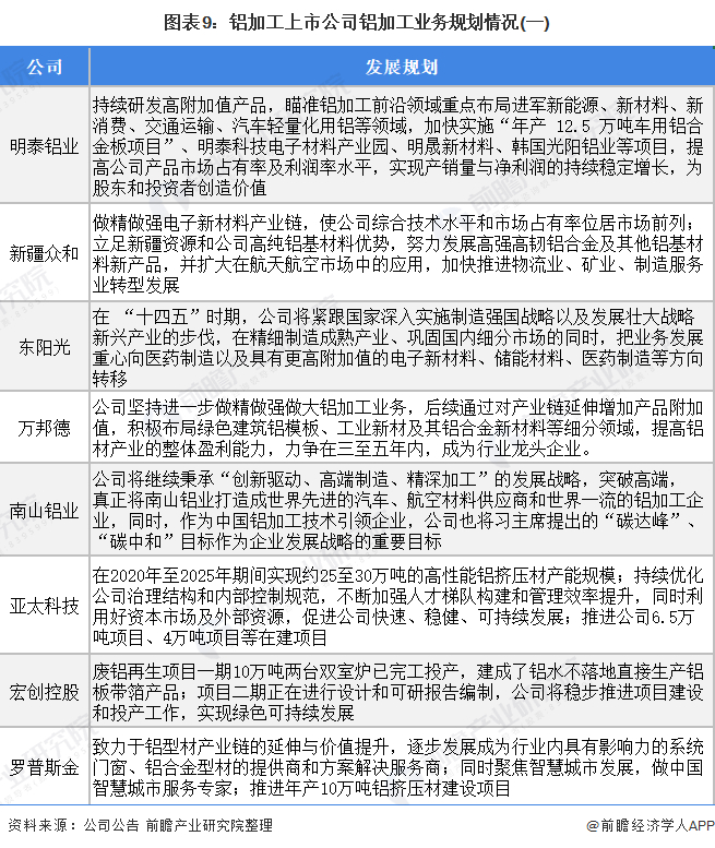从铝加工行业上市公司2021年铝加工业务规划总结得出,部分企业具有扩建产线、推进项目的计划,如亚太科技、万顺新材等;也有部分企业致力于完善自身产业链,如云铝股份、神火股份等;另有部分企业致力于改善市场,加强品牌效应,如南山铝业和st中孚等。