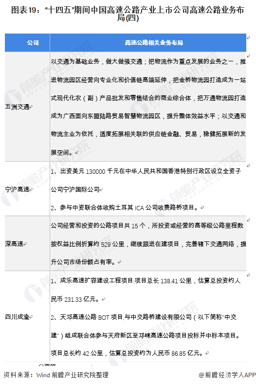 4、中国高速公路行业上市公司高速公路业务布局对比
