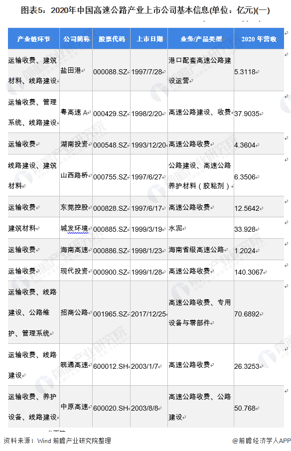 原标题:【最全】2021年中国高速公路产业上市公司全方位对比(附业务布局汇总、业绩对比、业务规划等) 来源:前瞻产业研究院