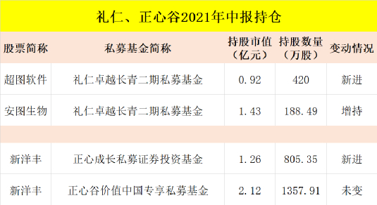 高瓴资本旗下二级私募平台礼仁投资,在今年二季度新进了超图软件,礼仁卓越长青二期私募证券投资基金持有420万股,期末持股市值为9181万元,位列第九大流通股东。同时最新披露的数据还显示,礼仁还持有安图生物188.49万股,持股市值为1.43亿元。