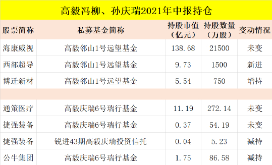另外,高毅庆瑞6号瑞行基金持有通策医疗272.14万股,期末持股市值为11.19亿元;锐进43期高毅庆瑞投资信托等两只产品减持了捷强装备,最新持有59.42万股。