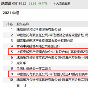 8月18日晚间纳思达最新披露的中报显示,高毅资产首席投资官邓晓峰加仓了该股,高毅晓峰2号致信基金保持持股不变,中信信托锐进43期高毅晓峰投资信托新进前十大,两只产品合计持有2984.77万股,二季度末持股市值为9.61亿元。