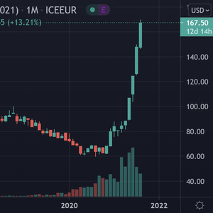 (纽卡斯尔港动力煤2021年9月期货月线图 图源:Tradingview)