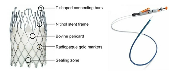 Allegra™经导管主动脉瓣膜由蓝帆医疗瑞士子公司NVT AG研发,该款产品于2017年获得CE注册,并于2020年5月获批“瓣中瓣”适应症,是欧洲首款获得该适应症的瓣膜产品。瓣膜由镍钛合金支架、三叶式牛心包瓣膜以及同材质密封裙边组成,瓣膜支架具有闭环菱形设计,网格尺寸变化分布有利于保留冠脉通路。Allegra™提供三种不同规格(23、27和 31毫米),所有规格均通过18F尺寸输送系统来完成植入。
