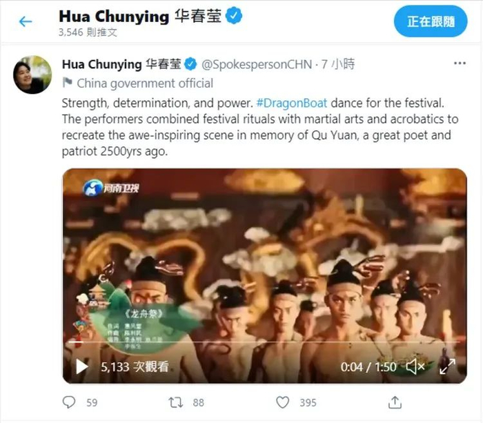 华春莹还向全球网友推介《端午奇妙游》的另一个节目《龙舟祭》!