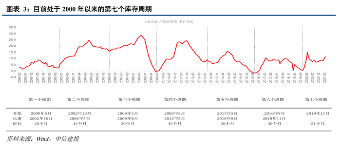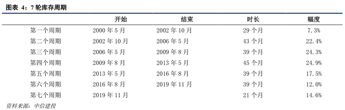 2000年以来我国经历了大约7个库存周期。一轮库存周期大约历时40个月。