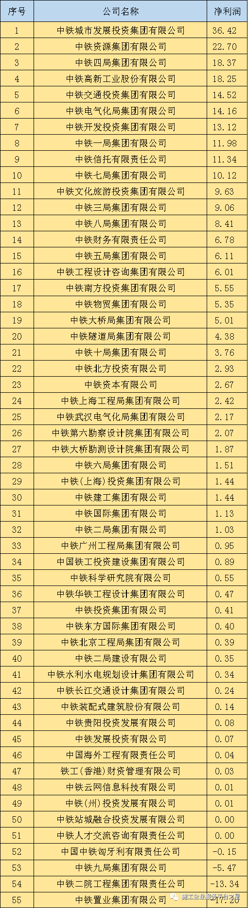 中铁55家子公司、中铁建34家子公司利润排行榜!
