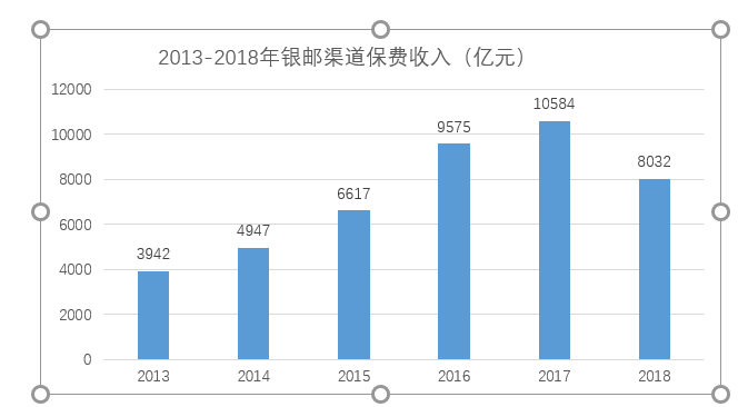 2014年-2017年,银邮渠道保费收入不断攀登新的高峰,年度保费规模从4947亿元一直冲到10584亿元,再次成为最大的销售渠道。