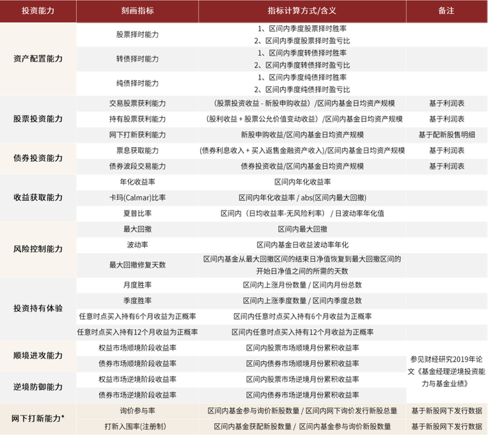 图表:“固收+”基金投资能力刻画及业绩评价指标体系