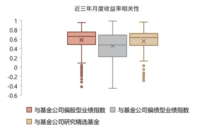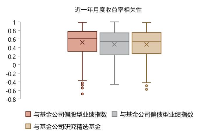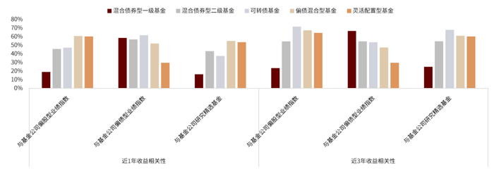 2)按基金类别来看,随着“固收+”基金权益仓位中枢上移,其与基金公司偏股型基金指数和研究精选基金的相关性均在提升,而与偏债型基金的相关性则反之。