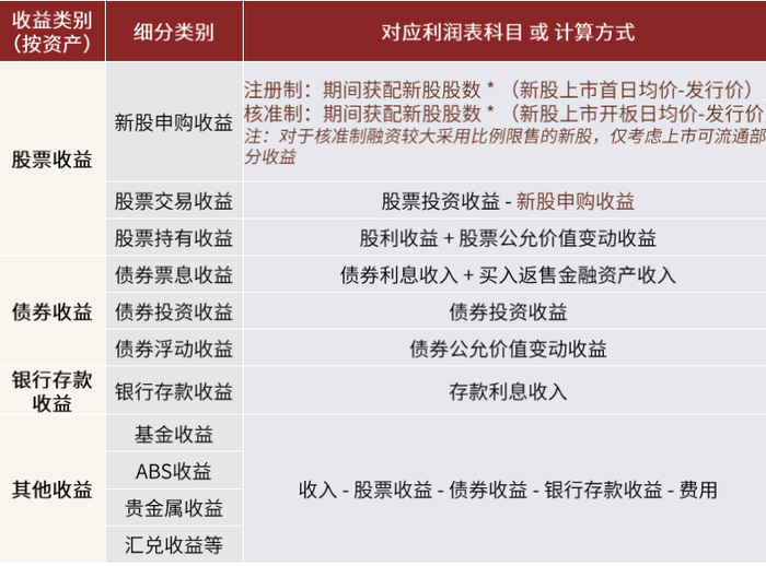 ►股票收益:可以进一步拆分为股票交易收益、股票持有收益和新股申购收益,交易收益和持有收益的差异也能反映基金经理的投资风格偏交易型还是偏长期持有型;此外,由于2016年打新取消预缴款制度后,几乎无成本的网下打新收益丰厚,笼统放在股票投资收益中容易过度放大股票投资能力,我们将通过新股配售明细数据估算基金打新收益贡献。