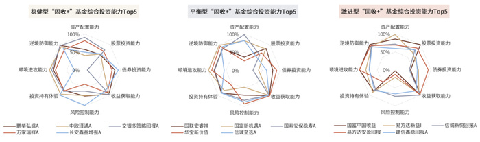 图表:近两年不同风险偏好“固收+”基金综合投资能力排名前五