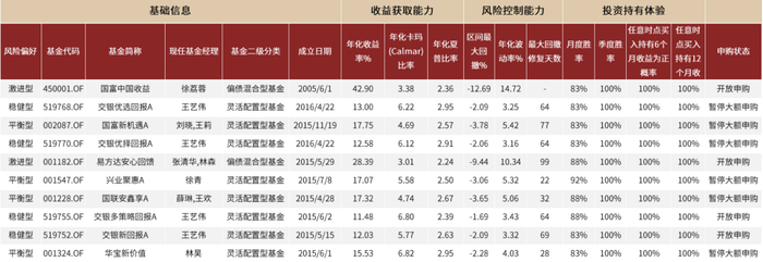 图表:攻守兼备“固收+”基金优选代表产品组合