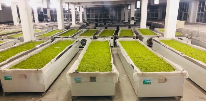 ▲在厂区内,工人们在装茶