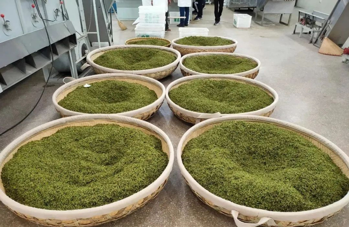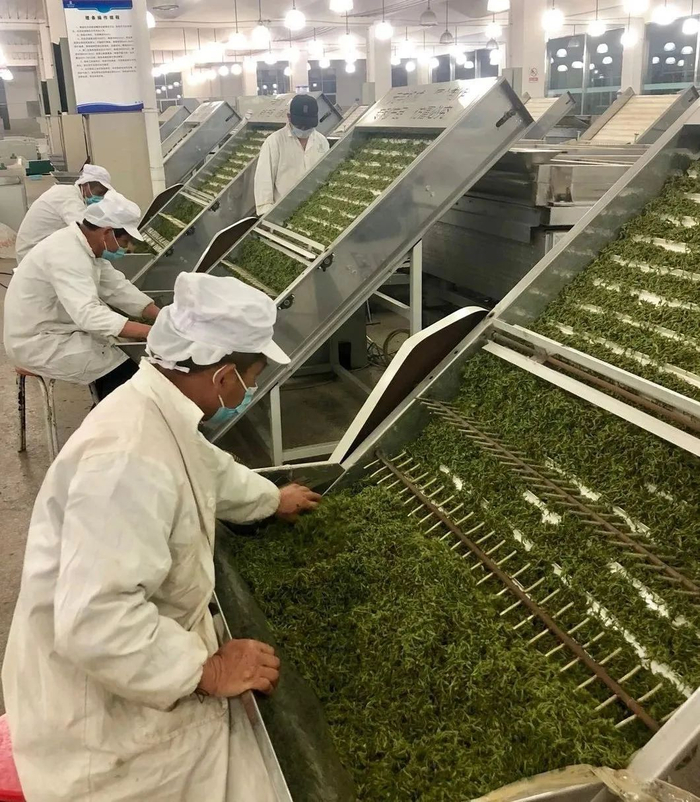 收青-摊青-杀青-理条-初烘摊凉-复烘-磨光-风选-分拣整理……历经10多道的工艺精致。