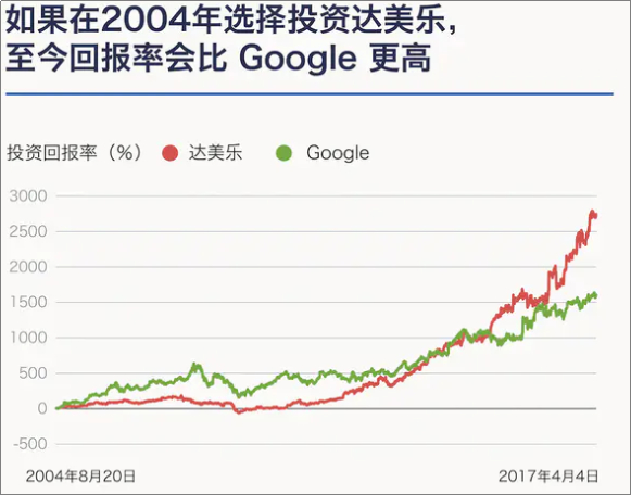 2.早在2017年,《好奇心日报》复盘了2004年以来的美股增长情况。其中谷歌的股票投资回报率超过了16倍,成为科技股一大霸主。