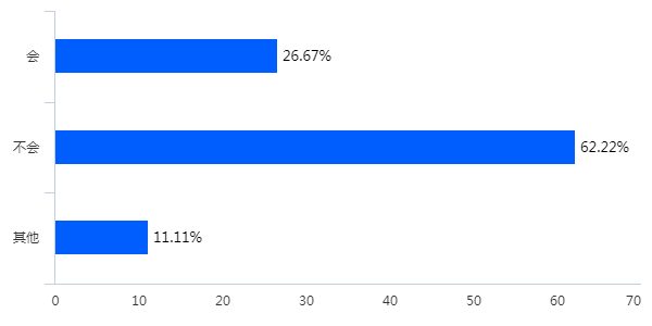 在“一家酒店曝出安全问题之后,是否会再次选择该酒店?”这个问题上,62.22%的消费者表示不会继续选择该酒店,26.67%的消费者会再次选择该酒店。总体来看,消费者在酒店行业安全监管能力上,信心程度并不高。
