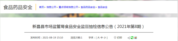 原标题:浙江新昌县市场监管局抽检147批次食品 7批次不合格