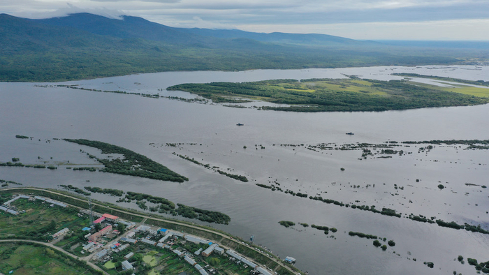 从高空俯瞰抚远市乌苏镇抓吉赫哲族村,是一条肥厚的大鲤鱼,造型鲜明而奇特。抓吉赫哲族村位于乌苏里江边,与俄罗斯隔江相望,是我国陆地最东端的边境行政村。 视觉中国 图