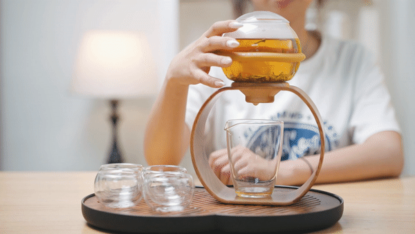你只需要旋转,向左或向右,几乎就是全部的冲泡过程了。泡好的茶水随着你的动作注入杯中,再省心不过。