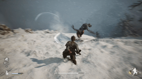 猿猴BOSS在使用刀气攻击后,雪地上也会留下刀气经过的痕迹。