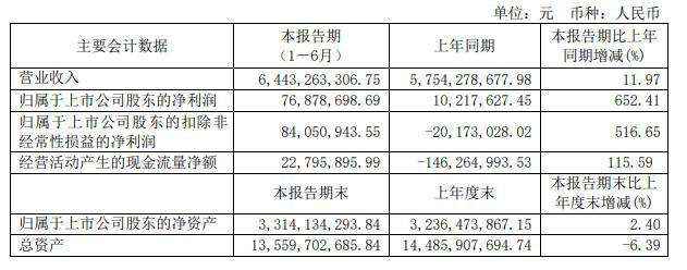 8月19日晚间,太极集团发布《2021年半年度报告》,该公司营业收入同比增长11.97%至64.43亿元,归属于上市公司股东的净利润同比增长652.41%至7687.87万元,扣非后净利润同比增长516.65%至8405.09万元。