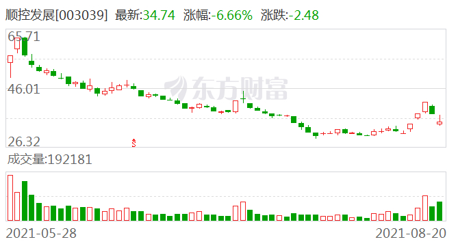 沪深交易所2021年08月20日公布的交易公开信息显示,顺控发展因成为当日换手率达到20%的证券上榜。顺控发展当日收报34.74元,涨跌幅-6.66%,换手率31.00%,成交额6.62亿元。