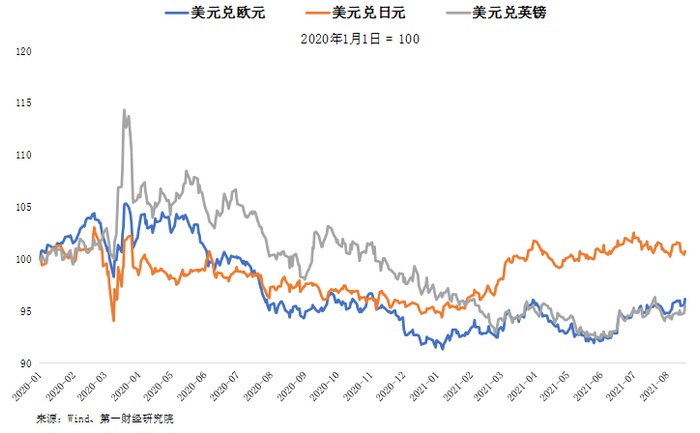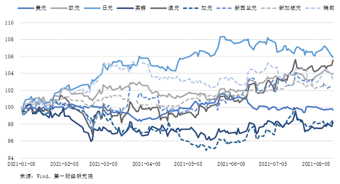 图3 人民币兑主要发达国家货币汇率的年内变化(2021年1月5日=100)