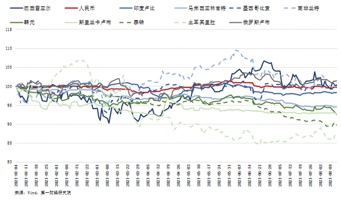 图12 新兴市场货币兑美元走势(2021年1月4日=100)