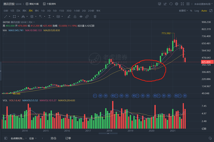 现在看,2019年9月-10月,基本也就是腾讯股价的一个阶段大底。