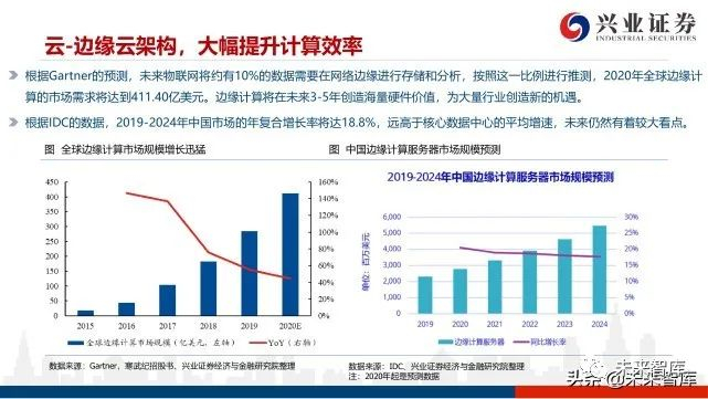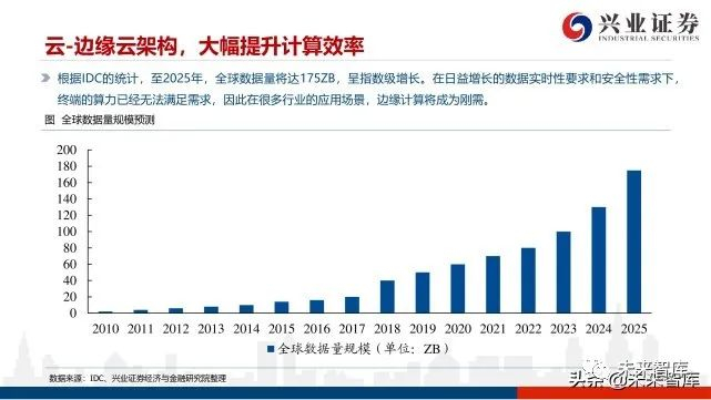 根据IDC的统计,至2025年,全球数据量将达175ZB,呈指数级增长。在日益增长的数据实时性要求和安全性需求下, 终端的算力已经无法满足需求,因此在很多行业的应用场景,边缘计算将成为刚需。