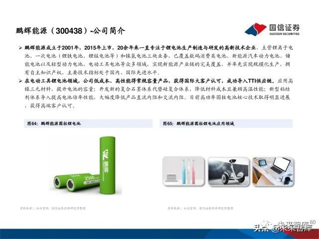 公司是国内锂电池领先企业,目前已经形成“锂原电池+ 动力储能+消费电池+电子烟(投资)”的梯状业务结构 。公司前身惠州亿纬成立于2001年,2009年上市,公司 08年时即为中国最大、世界第五的锂亚电池供应。2010年起公司开发成功方形软包和柱式电池进军锂离子 电池领域,之后通过收购惠州德赛聚能资产、麦克韦尔、 孚安特、金能电池等实现内生外延式发展。2018年公司 圆柱电池成功进入TTI等全球电动工具龙头产业链,大客 户放量圆柱电池需求快速上量。