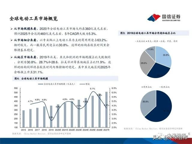 从市场规模来看,2020年全球电动工具市场大约在360亿美元左右, 预计2025年会达到460亿美元左右,5年CAGR大致为5.3%。